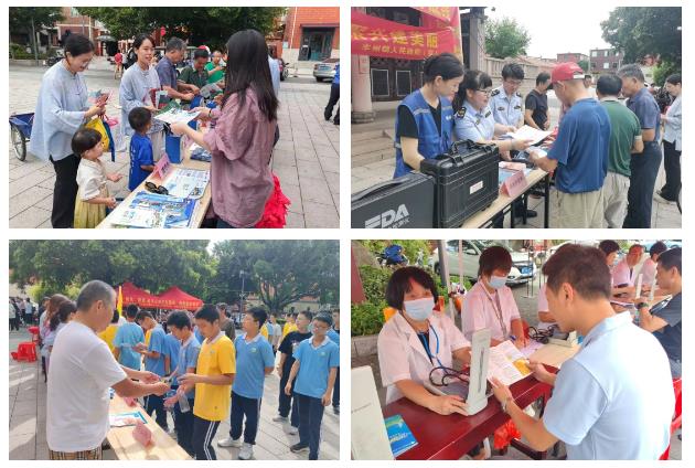 勾当中,九日山风光区入口处鲜艳的宣传拱门和吊挂的夺目口号,意愿者耐心详尽地向群众旅客《中华人平易近国平易近》、《中华人平易近国食物平安法》、禁毒相关等法令律例、发放各类科普普法宣、宣传,卫生院还免费为村平易近旅客开展健康检测征询。